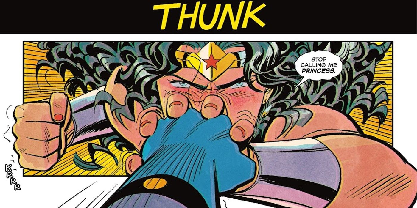 Por lo tanto, Birds of Prey traza un plan de contingencia completo no solo para la recuperación de Sin sino también para la propia Mujer Maravilla. Barda le da el primer golpe a Diana y comienza a dominar durante las siguientes páginas, llegando incluso a intentar romperle la espalda a Wonder Woman, al estilo Bane. Barda sigue teniendo ventaja hasta que llama a Diana “princesa” demasiadas veces. Esto provoca un segundo aire en Wonder Woman, quien le da un puñetazo masivo a la cara de Barda. La lucha continúa yendo y viniendo, incluso con el resto de los Pájaros involucrados, hasta que Diana envuelve su Lazo de la Verdad alrededor de Barda, quien resiste todo lo que puede hasta que finalmente es derrotada.