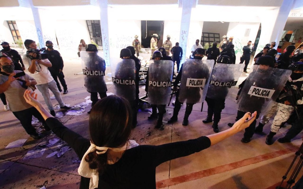 Las agresiones sexuales a las detenidas ocurrieron minutos después de que un grupo de alrededor de 20 policías salió de un costado del edificio municipal para disuadir la manifestación a balazos, con el uso de armas largas como ametralladoras y rifles, así como pistolas de calibre 9 milímetros.
