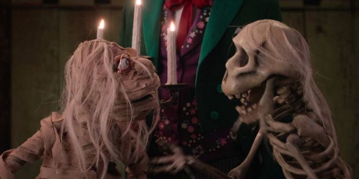 Una broma recurrente en el especial es la aparición de una momia y un esqueleto que parecen cantar “Dun-dun-dun!” para un efecto dramático / cómico. Es una broma, pero también es una referencia a un clásico absoluto en la tradición de los Muppets.