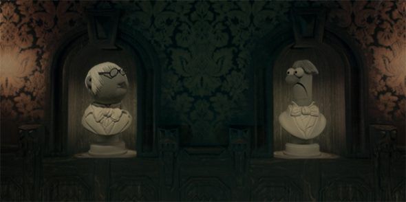 Si hay una imagen que captura perfectamente los temas, mensajes y motivos de La mansión encantada de los Muppets, es el de un Statler espectral y Waldorf intercambiando su palco de teatro por el icónico vehículo de paseo Haunted Mansion e interrumpiendo la actuación de Fozzie desde el más allá. Es gracioso, es una referencia directa al viaje y es algo que satisface a ambas bases de fans.