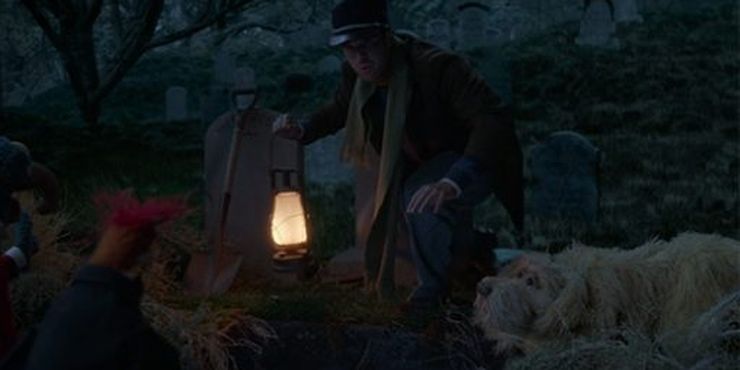 El único personaje humano vivo que aparece en el canon de Haunted Mansion es el cuidador, temblando en sus botas y acompañado por su perro demacrado. Los fanáticos casuales encontrarán al perro peludo y rubio adorablemente nervioso, pero los fanáticos de los Muppets notarán algo vagamente familiar en él.
