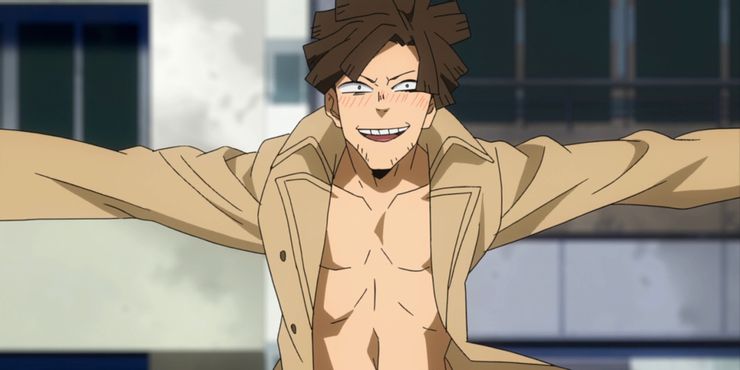 Terou Hazukashi solo se ve muy brevemente durante el Pro Hero Arc de la temporada 4 y, aunque deja una gran impresión, no es por las razones correctas. Capaz de manifestar algún tipo de habilidad que se ve fortalecida por su propia vergüenza, Hazukashi expone su forma desnuda al mundo para encenderse.