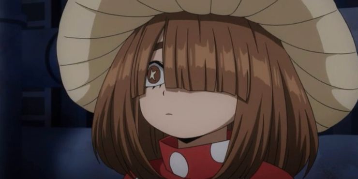 Kinoko Kimori, miembro de la Clase 1-B de UA, puede liberar esporas de su cuerpo que rápidamente se convierten en hongos. También es capaz de generar una cortina de humo que puede usarse para obstaculizar la visión de sus oponentes. Lo más importante es que tiene la capacidad de asfixiar a los enemigos manifestando hongos en sus gargantas, incapacitándolos temporalmente.