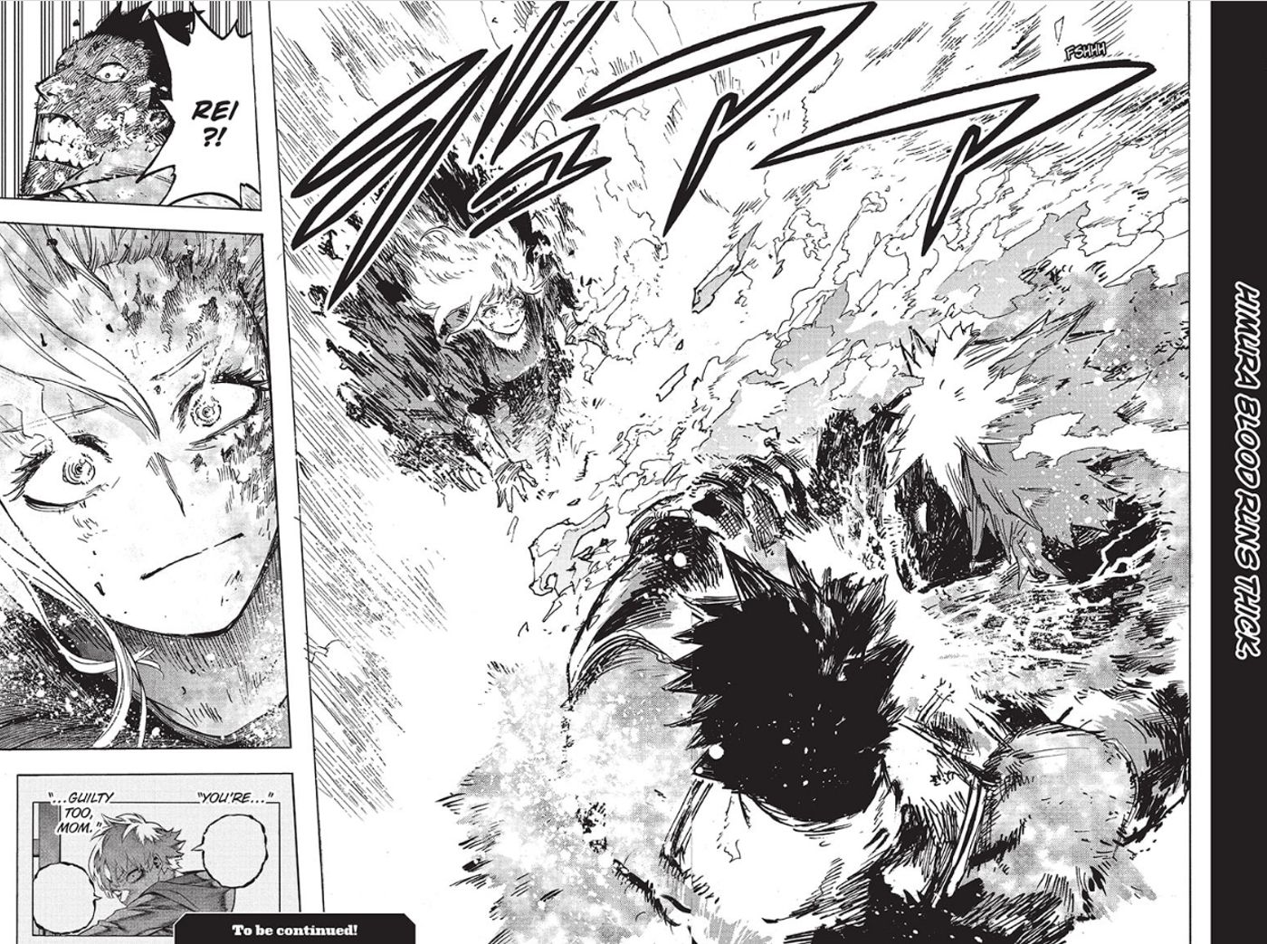 Los capítulos anteriores dejaron en claro que Dabi tiene la intención de empujarse a sí mismo hasta que explote, lo que podría acabar con un área masiva que incluye tanto a civiles como a docenas de héroes, con el objetivo de acabar con su propio padre, el héroe Endeavour. Con Endeavour agotado, Shoto se dirige desesperadamente hacia allí, con la esperanza de evitar que su hermano siga matando. La llegada de Rei (y aparentemente los otros hermanos, Fuyumi y Natsuo) agrega un factor de complicación importante. Después de todo, la ira de Dabi está dirigida principalmente a su padre, pero está tan ido que puede que no le importe si mata al resto de la familia junto con ellos. El cuerpo de Dabi también se ha reducido a poco más que cenizas, por lo que es posible que no sea posible salvarlo en esta etapa, si eso es lo que Rei espera. La familia Todoroki se ha visto envuelta en una tragedia durante años, y esta confrontación tiene el potencial de ser la angustia final que la serie ha estado construyendo durante cientos de capítulos.