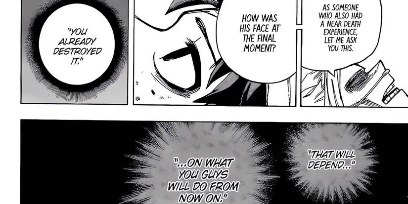 Deku todavía tiene mucho que lograr, no sólo en términos de sus propios sueños y metas, sino también en términos de la promesa que le hizo a Shigaraki en sus momentos finales. Aunque la batalla ha terminado, los últimos capítulos indican que las cosas simplemente no volverán a ser como eran, y tampoco deberían volver a ser como eran. La sociedad de héroes necesita cambiar para garantizar que no cree más víctimas y villanos como Tenko y, tal como están las cosas, no se han realizado esfuerzos para ningún tipo de reforma. Este cambio simplemente no puede ocurrir de la noche a la mañana, por lo que, de manera realista, se necesitarían varios capítulos o un salto de tiempo para lograrlo.