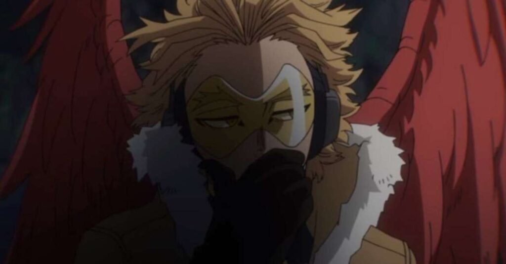 Dabi, el hijo secreto de Endeavour que había sobrevivido al incidente que muchos creían que lo había matado en su infancia, demostró ser el oponente perfecto para hacer frente a Hawks, usando su llama para quemar gran parte de las plumas que componen sus alas. Incapaz de volar durante esta última entrega, el héroe número dos puede agarrar a Lady Nagant usando las pequeñas plumas que quedan, pero desafortunadamente ya no puede volar por el momento. Afortunadamente para él, Midoriya lo tenía cubierto ya que el portador actual de One For All pudo usar Blackwhip para detener su caída.