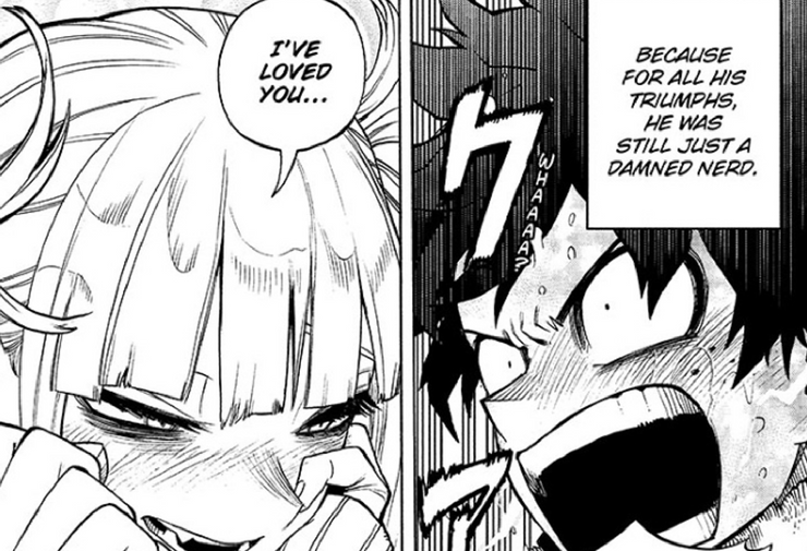 Hasta ahora, los fanáticos siempre daban por sentado que el narrador de la historia es Deku, pero el capítulo 348 insinúa que lo más probable es que sea Bakugo. Después de que Himiko Toga confiesa su amor por Deku, el narrador explica que la razón por la que Deku no puede creer que alguien pueda sentir algo por él es porque es un “maldito nerd.“Porque llamar a Deku un”maldito nerd“es esencialmente uno de los eslóganes de Bakugo, es una prueba bastante definitiva de que mi héroe academia está narrado desde la perspectiva de Bakugo. Si bien es un pequeño giro interesante, esta revelación no tiene consecuencias importantes, al menos, no al principio.