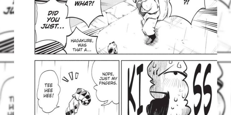 Capítulo 6 de Misiones en equipo ve a Hagakure y Ojiro enviados a una pequeña escuela de héroes privada en una isla para dar una presentación a algunos niños más pequeños. Si bien los niños están impresionados por su invisibilidad, algunos no ven la cola de Ojiro como una peculiaridad. Cuando uno de los niños se pierde, Ojiro termina salvando el día, demostrándole al niño que ser un héroe no se trata solo del poder de una peculiaridad. Mientras Hagakure y Ojiro conversan mientras esperan para salir de la isla, ella lo toca de una manera que él cree que es un beso, pero que ella afirma que fueron simplemente sus dedos (habiéndose quitado el guante para hacerlo sigilosamente). Como personajes secundarios en la Clase 1-A, Hagakure y Ojiro han tenido algunas interacciones antes, como que Hagakure se sintiera avergonzado cuando tuvo que cambiarse a su traje de Chica Invisible (también conocido como desvestirse) frente a él, a pesar de que le era imposible ver. cualquier cosa y ella corriendo así todo el tiempo de todos modos. Aún así, no ha habido mucho que indique ningún potencial romántico entre los dos fuera de este capítulo.