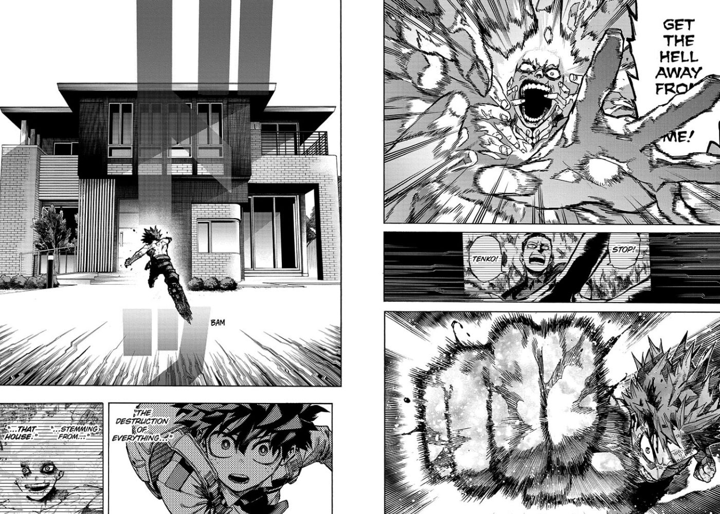Capítulo #416 de mi héroe academia revela que Deku finalmente está rompiendo las defensas de Shigaraki, tanto es así que Shigaraki está comenzando a angustiarse visiblemente. Justo cuando está a punto de dar un puñetazo, Deku de repente se encuentra frente a la antigua casa familiar de Shigaraki.insinuando que Deku finalmente podría conocer todo el pasado de Shigaraki en los próximos capítulos.