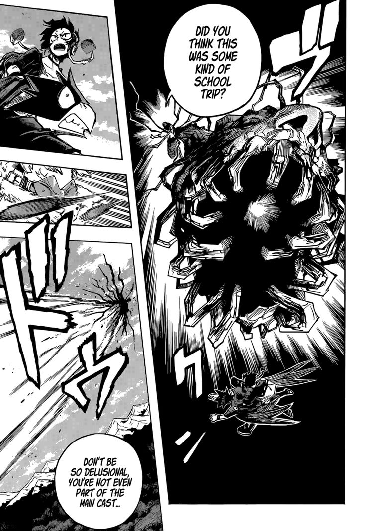 En el capítulo 355, la batalla final entre los héroes y All for One y su grupo de villanos avanza. Los estudiantes de la clase 1-A decidieron participar porque Midoriya es el objetivo principal de All for One. De acuerdo con el plan de los héroes, los villanos se han dividido, y la tarea casi imposible de luchar All for One recayó en Endeavour y Hawks, los dos héroes más importantes de Japón. De mala gana reciben el apoyo de dos estudiantes, Tokoyami y Jiro. All for One se burla de ellos, diciendo que “son ni siquiera forma parte del elenco principal“, y eso “codearse con gente extraordinaria” les hizo pensar erróneamente que eran dignos de enfrentarse a él, el villano más fuerte. Sin embargo, All for One se ve frenado por las voluntades persistentes de las muchas personas “débiles” a las que les robó peculiaridades en el pasado, lo que le permite a Jiro aterrizar. un ataque que crea una apertura para que Hawks ataque. Es la manera perfecta para de mi hero academia héroes menores para vencer a All For One.