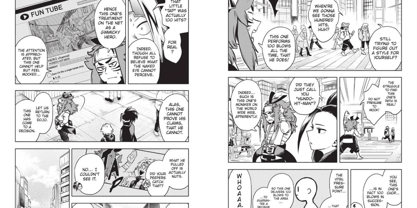 - El trío formado por Momo, Kaminari y Hatsume intenta ayudar a Blackbelt a obtener reconocimiento por sus esfuerzos, y finalmente captura su velocidad con una cámara de drones de alta velocidad y muestra al público lo impresionante que es en realidad.