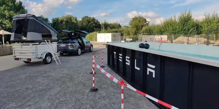 Tesla está instalando una piscina en una de sus estaciones Supercharger en Alemania. Estará abierto del 4 al 28 de agosto, de jueves a domingo.