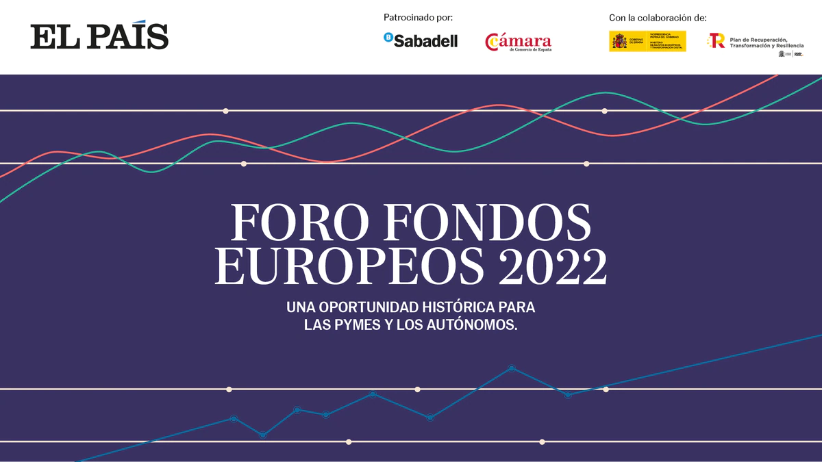 Bajo ese contexto, este lunes EL PAÍS celebrará el encuentro Fondos Europeos 2022: una oportunidad histórica para las pymes y los autónomos en el taller de Ideas de 10:00 a 12:50 horas. El foro, conducido por Javier Ruiz, jefe de Economía de Cadena SER, está patrocinado por Banco Sabadell y la Cámara de Comercio de España, y cuenta con la colaboración del Ministerio de Asuntos Económicos y Transformación Digital. La audiencia lo podrá seguir en directo en la web de EL PAÍS.