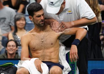 La osada afirmación de un periodista argentino, elogioso con el esfuerzo de su compatriota Juan Ignacio Londero en la central mientras este rebate a Novak Djokovic, contrasta con el rostro dolorido del serbio. Nole, que defiende el título en Nueva York y aspira a convertirse en el primer tenista que consigue revalidarlo desde que Roger Federer lo engarzara de 2004 a 2008, se echa varias veces la mano derecha al hombro izquierdo. Y cuando termina el primer parcial se activa la luz roja: el número uno se quita la camiseta y reclama asistencia médica (medical time-out) porque apenas puede pegarle a la bola de revés y tampoco puede elevarla correctamente para el servicio.