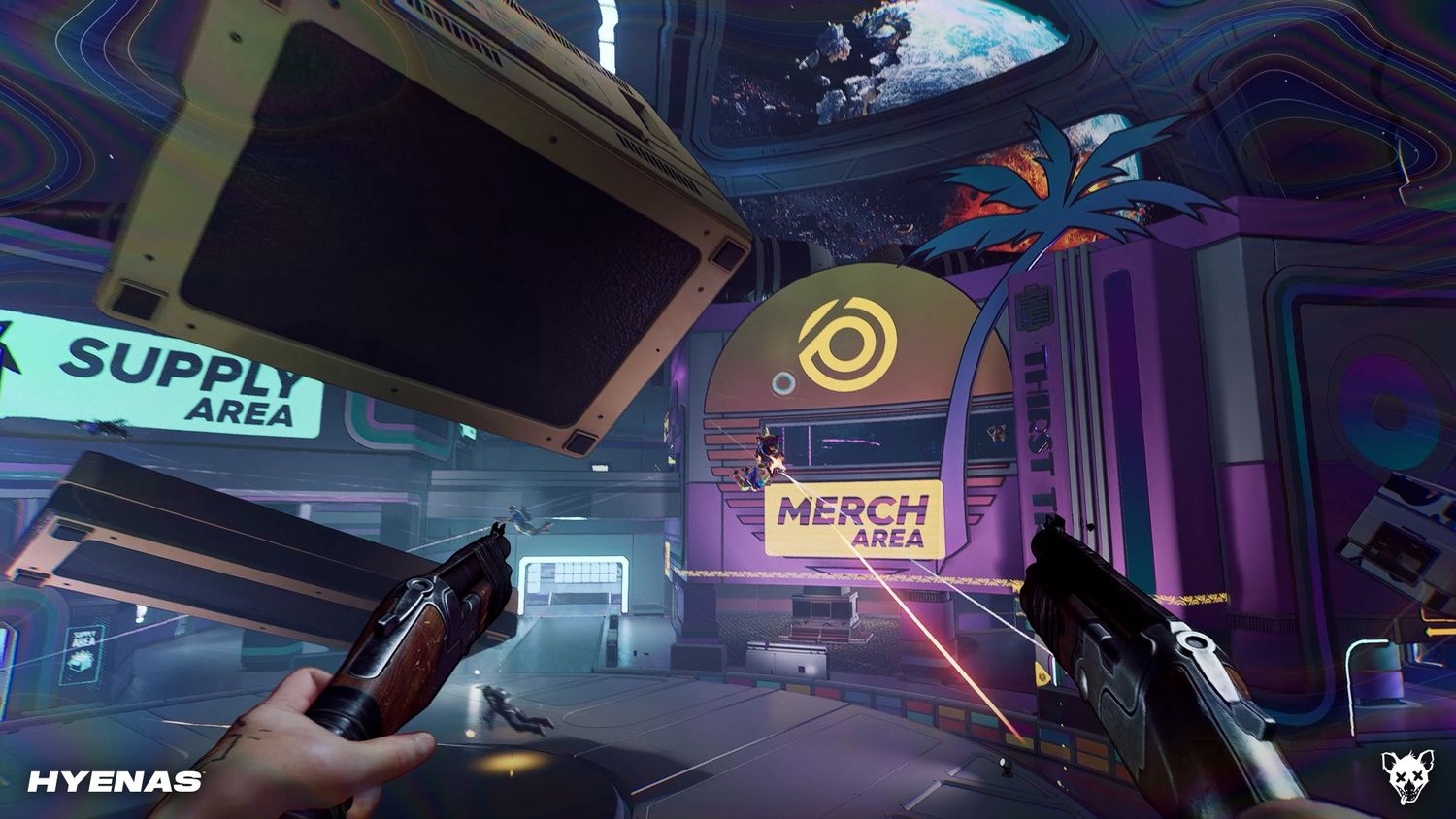 Tras la invención de una tecnología antigravedad, los multimillonarios abandonaron en gran medida la Tierra para vivir en Marte y lograr mantener la satisfacción en su nueva vida a través del Merch, los raros desechos que deja la sociedad humana. Con tanto que ya les han quitado, las pandillas han comenzado a robar este Merchandise para ellos mismos, con Hiena tener todo de Sonic llaveros de Ataris. Hasta ahora se han anunciado ocho hienas como parte del título, todas las cuales tienen sus propias cualidades y habilidades extravagantes, como la idealista Comandante Wright y su arma de cañón de espuma, o el meta Doc Hotfix, que insiste en que es un personaje jugador en un FPS. .