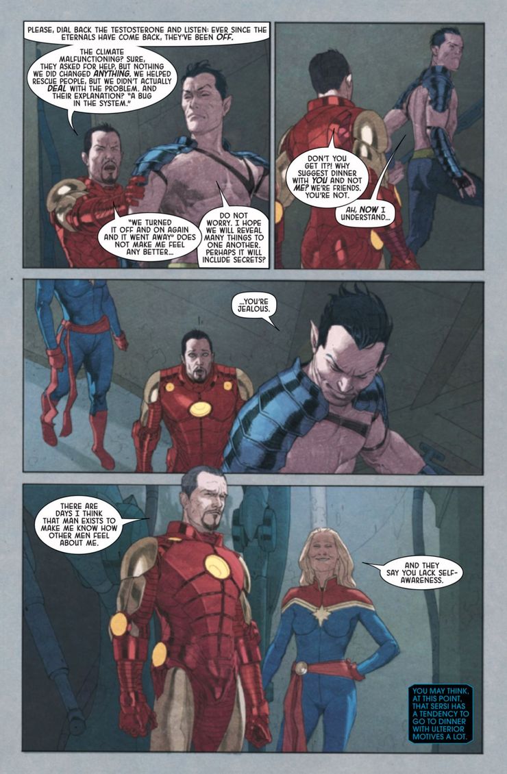 La reacción de Tony, sin embargo, no está motivada por los celos (al menos, no del todo). Los Eternos tienen su propia agenda, y es probable que el plan de Sersi distraiga a Namor mientras sus compañeros se infiltran en la Montaña de los Vengadores y recuperan la forma secreta de matar a Thanos de la mente del Celestial muerto. Sin embargo, también es posible que al final sea Sersi la seducida. Después de todo, el encanto del Rey de la Atlántida es tan legendario como su fuerza. Si un romance realmente florece de este encuentro, las consecuencias podrían ser interesantes. Los Eternos están muy descontentos de que los Vengadores vivan dentro del cadáver de un Celestial, un ser sagrado para ellos. A pesar de eso, es poco probable que Sersi quiera dañar a sus amigos y excompañeros. Durante su tiempo como Avenger, desarrolló fuertes lazos con ellos y sus increíbles poderes ayudaron al equipo a tener éxito muchas veces. De hecho, Sersi fue uno de los Vengadores más poderosos, y en un equipo que incluía al mismísimo Príncipe del Poder, Hércules, ese no fue un elogio pequeño.