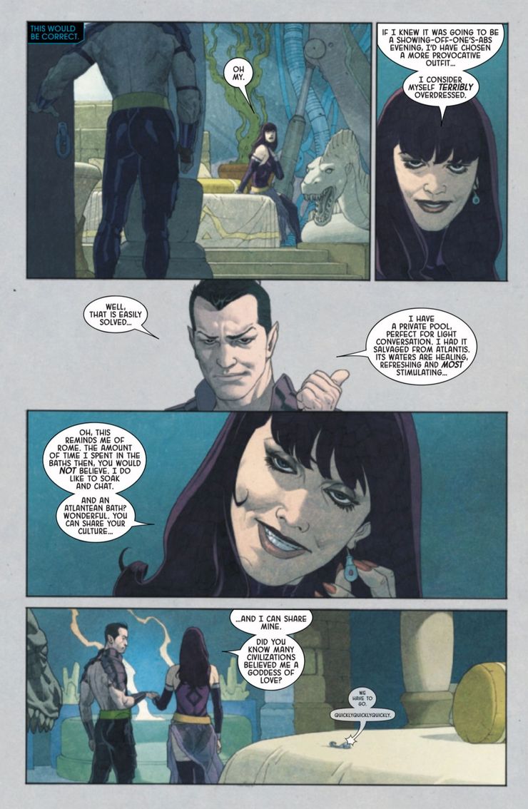 En un adelanto de la próxima edición de eternos #10, Namor el Submariner tiene una cita romántica (que involucra una piscina llena de aguas “estimulantes” atlantes) con uno de los más poderosos Vengadores en la historia: la sersi eterna.