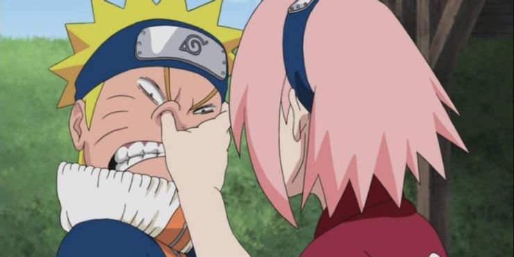 Durante la mayor parte de la serie, Naruto estaba desesperadamente enamorado de Sakura. Además, durante la mayor parte de ese tiempo, Sakura frecuentemente golpeaba a Naruto hasta convertirlo en una pulpa por ponerla de los nervios. Siempre que Naruto avergonzaba a Sakura, ella respondía de inmediato poniéndolo en una llave de cabeza o golpeándolo en la parte superior de su cabeza amarilla.