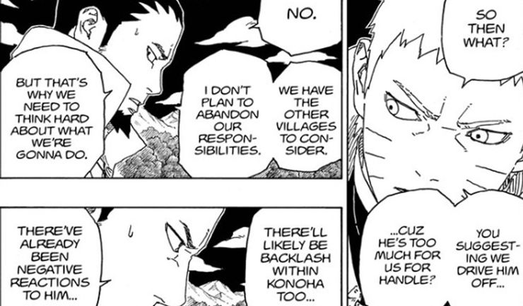 En el capítulo 67 de Boruto: Naruto Próximas Generaciones, los lectores se enteran de que la burla masiva en la última entrega, que implicaba en gran medida que Kawaki podría haber matado al shinobi epónimo de la serie y al hijo biológico de Naruto, realmente sucedió. Boruto está muerto, y Naruto es comprensiblemente un desastre. Pero, increíblemente, el Hokage se niega a aceptar el consejo de su segundo al mando, Shikamaru Nara, de al menos considerar que la aldea debería idear un plan sobre cómo lidiar con Kawaki, especialmente porque el niño acaba de demostrar que hará cualquier cosa para lograrlo. sus objetivos, incluso asesinar a su propio camarada. Sin embargo, el momento más importante ocurre cuando Shikamaru le dice a Naruto que habrá una reacción violenta dentro de Konoha si no hace algo, ya que muchos aldeanos ya se sienten mal por él, pero Naruto se niega a considerar sus sentimientos ya que Kawaki es familia.