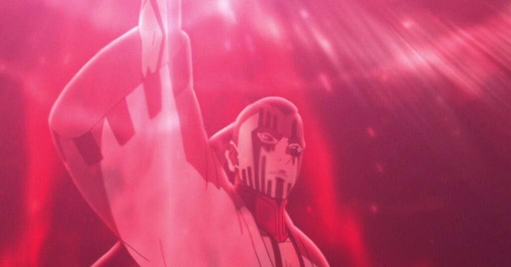 El episodio 203 de la serie ve a Jigen usando el Karma de Kawaki como un portal improvisado para invadir la casa de Naruto. Esto sucede de la misma manera en el manga, pero el anime le da a Naruto más tiempo para pelear con él directamente. Esto permite que el anime muestre más poder aterrador de Jigen. Vemos un par de sus trucos en acción, como estas varillas pesadas que clavan a Naruto en el suelo, y una provocación de una explosión totalmente poderosa capaz de destruir toda la aldea de un solo golpe.
