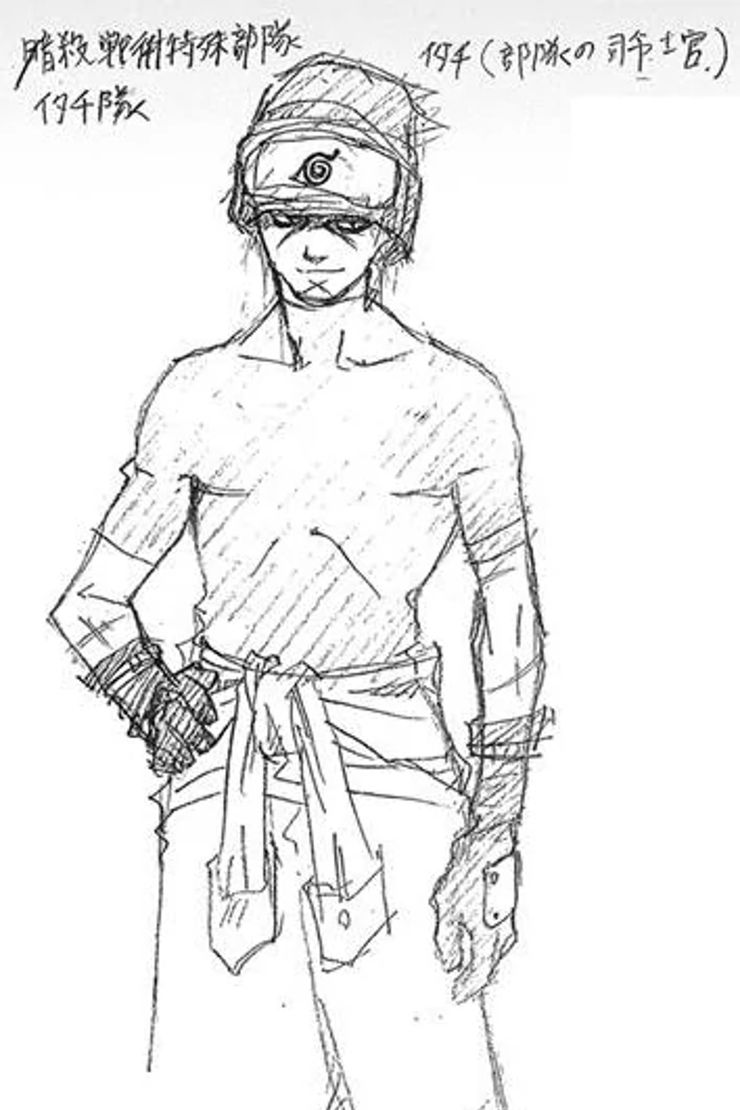 En la Cuarta Guía de Naruto, Kishimoto les dio a los fanáticos un vistazo a cómo podría haber sido la primera encarnación de Itachi Uchiha. Este modelo de personaje luce una cubierta para la cabeza similar a la de Iwabe de Boruto y una cicatriz en la barbilla en forma de X similar a la de Danzo. La postura y la actitud de este modelo de personaje también parecen transmitir una personalidad completamente diferente a la que los fanáticos de Itachi conocen. Esta versión anterior de Itachi también era diferente en términos de su historia de fondo. Originalmente, Kishimoto había planeado que Itachi fuera simplemente una persona malvada que le dio a Sasuke una razón para querer matarlo. Sin embargo, esto pronto cambió cuando Kishimoto decidió convertir a Itachi en miembro de ANBU Black Ops, un escuadrón de asesinos encubiertos de Hidden Leaf. Kishimoto decidió que la historia de fondo más trágica de Itachi se adaptaba mejor a su papel en la historia, y su diseño final con el que los fanáticos están familiarizados refleja ese cambio.
