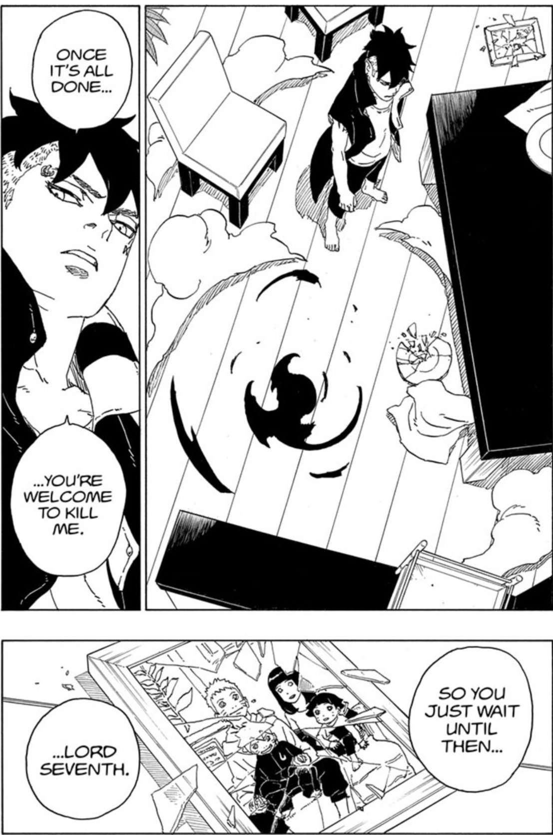 Las células de Otsutsuki en el cuerpo de Boruto lo regeneraron, pero al hacerlo, Momoshiki ya no podía poseer completamente el cuerpo de Boruto. Kawaki luego se decidió a eliminar todo rastro del Clan Otsutsuki, la tribu alienígena de la que se originaron Kaguya e Isshiki. Desafortunadamente, esto incluye los restos de Otsutsuki de Momoshiki que se han convertido en parte de Boruto. Sabiendo que el Séptimo Hokage nunca permitiría que mataran a Boruto, Kawaki tomó una decisión dramática en el capítulo 77 del manga que nadie vio venir, especialmente Naruto. Todo esto prepara el escenario para boruto para obtener su propio Naruto Shippuden Estilo parte 2.