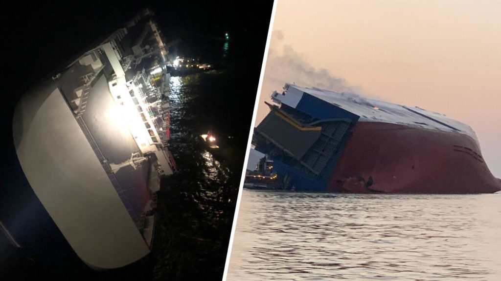 Los problemas del buque de carga “Golden Ray” comenzaron temprano en la mañana cuando rodó de lado en St. Simons Sound, cerca del puerto de Brunswick, con 23 miembros de la tripulación y un capitán a bordo.