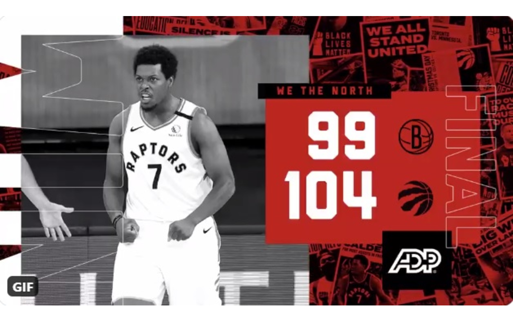 Toronto Raptors vino de atrás para imponerse 104-99 a Brooklyn Nets este miércoles, primera ronda del Playoff de la NBA en Orlando, serie que lidera el campeón defensor 2-0.