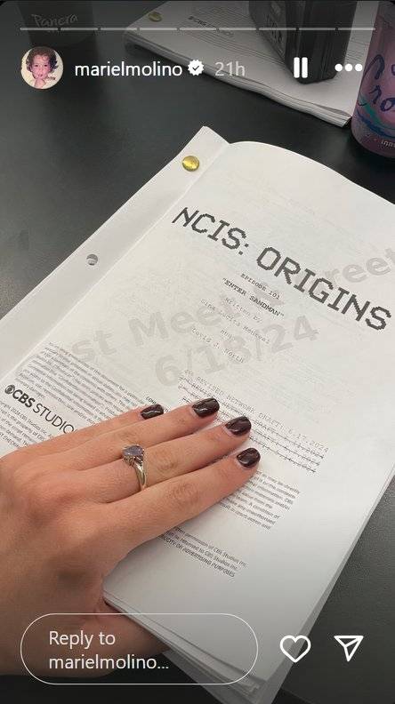 En su cuenta oficial de Instagram, Mariel Molino compartió una historia celebrando el hecho de que comienza la producción de la próxima serie de CBS, que debutará como parte de la temporada 2024-2025 de la cadena junto con los programas que regresan. NCIS (para la temporada 22) y NCIS: Sídney (para la temporada 2). La imagen que compartió Molino la muestra tocando su guión de el primer episodio de la temporada, que se titula “Enter Sandman”. Vea una captura de pantalla de la historia a continuación: