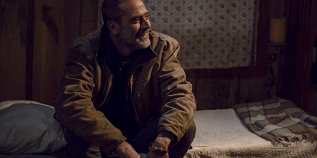 Un clip publicado antes del domingo. Muertos vivientes El final de la temporada nueve ve a Negan (Jeffrey Dean Morgan) arrastrando el "cuadrángulo de amor" del Padre Gabriel (Seth Gilliam), Siddiq (Avi Nash), Eugene (Josh McDermitt) y una embarazada Rosita (Christian Serratos) durante una tormenta de nieve. Negan fue reubicado de su celda de la prisión para evitar que muriera congelado, y el prisionero de confinamiento solitario durante mucho tiempo está disfrutando de su nueva compañía.