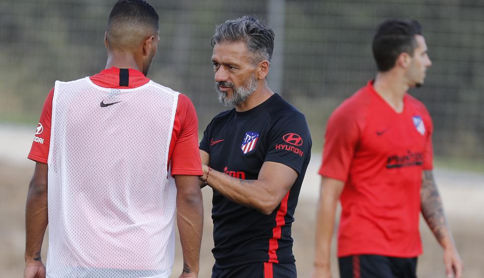 , tomó el mando en su vuelta al trabajo mientras Diego Simeone se mantiene aislado por covid-19, en una sesión en la que Víctor Machín, ‘Vitolo’, siguió al margen por segunda jornada consecutiva por un golpe en el entrenamiento del pasado miércoles.
