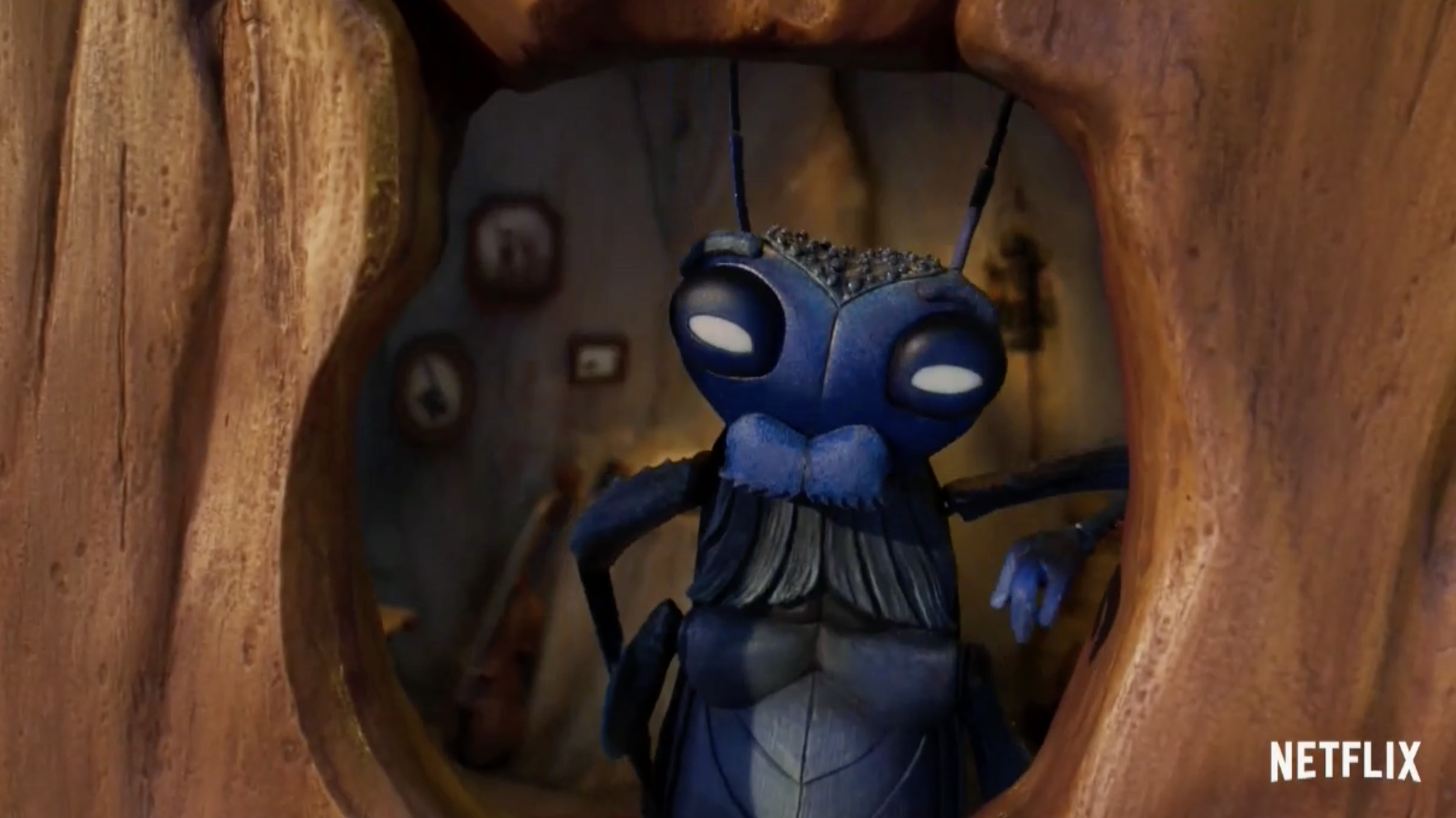 “Quiero contarles una historia, tal vez crean que conocen esta historia pero no es así, no realmente. Yo, Sebastián J. Grillo, estuve ahí, para ser exactos, yo viví en el corazón del niño de madera”, dice un personaje gris azulado que habita un tronco de madera en el primer adelanto de Netflix.