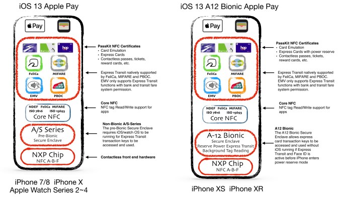 Como ejemplo de NFC en acción en un dispositivo iOS 13, la compañía mostró cómo un comerciante podría usar etiquetas NFC que mostraban una descripción del producto después de que el cliente lo hubiera escaneado, y cómo otra etiqueta NFC podía ofrecerle un cupón al cliente. compra, cuando se escanea.