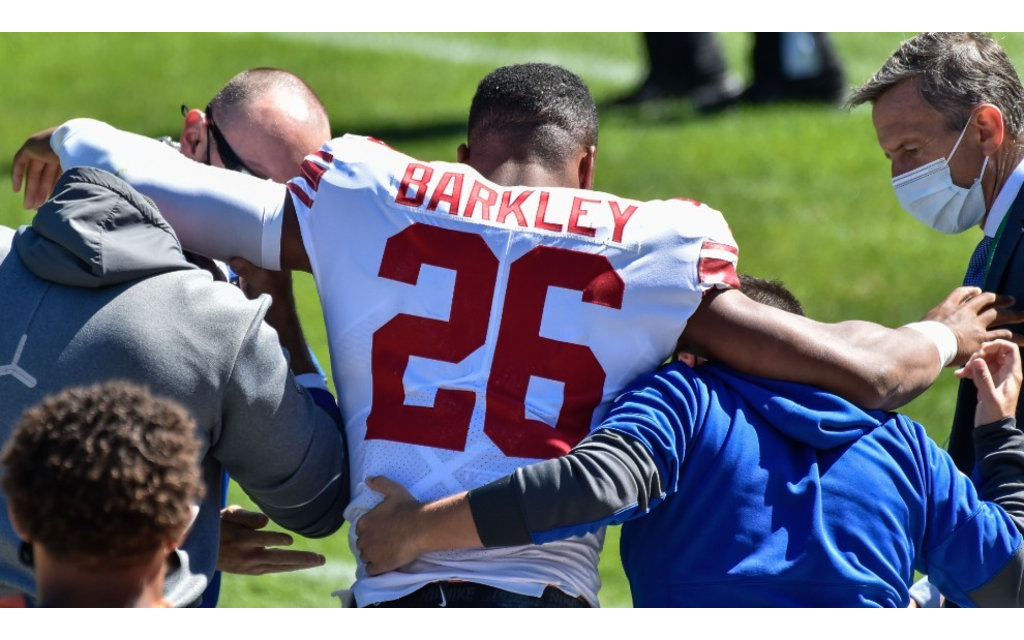 La lesión de Barkley se dio en la primera jugada del segundo cuarto del duelo entre Gigantes y Osos en Soldier Field, con victoria para los locales 17-13, cuando el corredor intentó escaparse por el lado derecho y al pretender quedarse dentro del terreno de juego, la rodilla hizo un movimiento extraño.