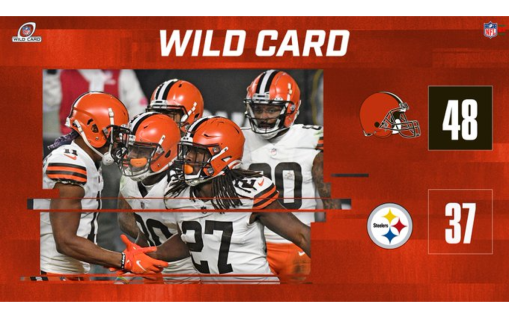 Cafés de Cleveland, sin su entrenador Kevin Stefanski (contagiado de Covid-19), venció 48-37 a Acereros de Pittsburgh, encuentro correspondiente a la Ronda de Comodines AFC, celebrado este domingo en Heinz Filed.