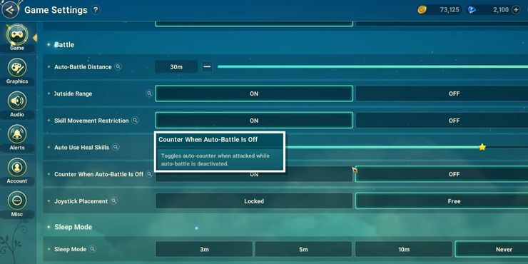 Para desactivar Auto-Battle y habilitar el modo manual en cruzar mundos, ingrese al menú de opciones presionando el ícono de ajustes en la parte inferior del HUD de tres barras. A continuación, ingrese “Juego” y desactive la opción “Contador cuando Auto-Battle está desactivado”. Esto deshabilita la función que hace que los jugadores ingresen automáticamente a Auto-Battle cada vez que son atacados cuando están inactivos. Sin embargo, aquellos que deseen personalizar el modo semiautomático o el modo totalmente automático pueden hacerlo manteniendo el cursor sobre el ícono de batalla automática en la parte inferior de la pantalla.