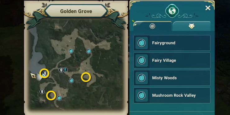 Para obtener el Cofre de vid de árbol en Golden Grove, los jugadores primero deben encontrar el Hongo Árbol Vista. Desde el marcador de la vista, viaja hacia el suroeste y sube por la rama gruesa que se extiende sobre el acantilado para llegar al cofre con artículos útiles en cruzar mundos. Próximo, a partir de Fairy Village, camine hacia el este hacia la gran área abierta en el mapa. Finalmente, mire hacia la cascada prominente hacia el sur para ver el Cofre sobre rocas sobre una formación rocosa elevada. Para llegar al cofre, asciende por el camino accidentado cerca de un grupo de mobs de Sunlit Pond.