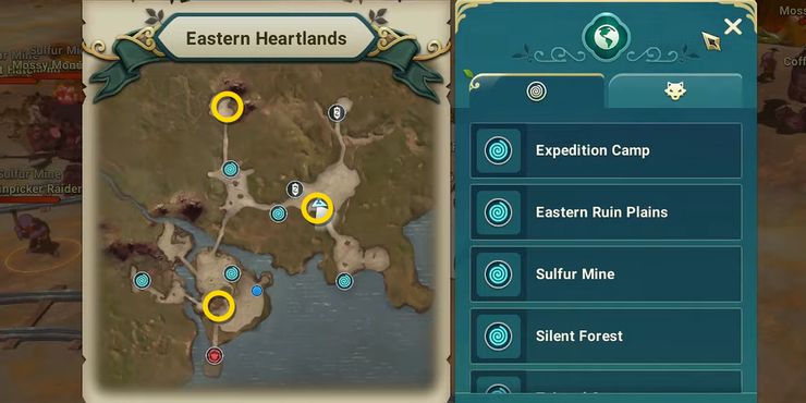 Un cofre del tesoro que los jugadores pueden encontrar en Eastern Heartlands es el cofre de la mina de azufre. Para descubrir este coleccionable, viaje rápido al punto más central del mapa. Luego, dirígete hacia el este y quédate cerca del muro fronterizo sur del área. El cofre estará sentado en una pequeña colina entre un andamio de madera corto y un ascensor que transporta azufre.