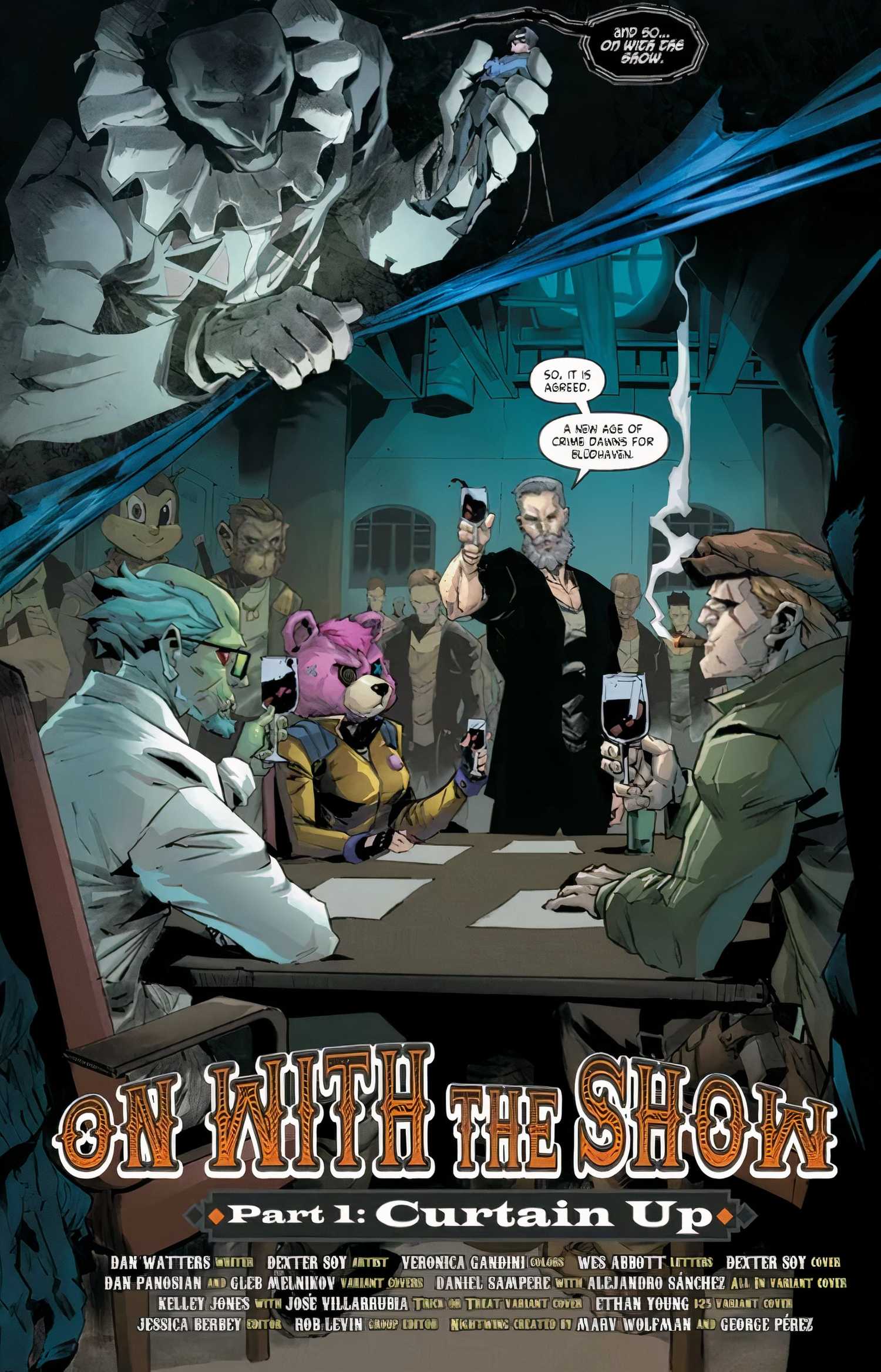 La pregunta es cómo el Zanni está influyendo en la aventura actual de Nightwing. Dick está tratando de detener una guerra de pandillas que está siendo exacerbada deliberadamente por las fuerzas del reemplazo policial militarizado, las industrias de Sphericic. Dick ya conoce una conexión entre Sphereric y The Circus, habiéndose dado cuenta de que la CEO de Spheric, Olivia Pearce, es Colombina, pero No tiene idea de que el zanni es más que una alucinación. Nightwing está bien equipado para luchar contra una guerra a nivel grupal, pero si la magia real comienza a tener en cuenta, entonces puede tener que llamar a algunos aliados con más experiencia en ese ámbito.