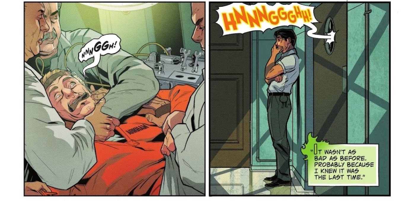 “/> La historia secreta del héroe de la Edad de Oro se explora trágicamente en Alan Scott: El Linterna Verde #2. Después de perder a su amante, Alan ingresa en Arkham Asylum, donde los psiquiatras intentan “curarlo” de sus deseos hacia el mismo sexo. El tema es terriblemente fiel a la vida real de Alan. experimenta terapia electroconvulsiva contra su voluntad (y eso sin mencionar el trato que recibe su amiga transgénero Billie en Arkham). Aunque el tiempo de Scott en el Asilo es breve, es inquietante ver a alguien pasar por cosas así.