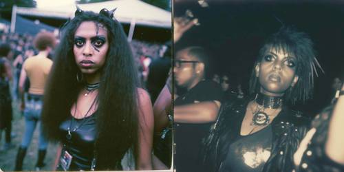 Eso lo hace aún más efectivo cuando la IA lo hace bien. Fotos generadas por IA de la ex luchadora de MMA y artista Fallon Fox, que se han vuelto virales desde que las publicó en Gorjeo y Facebook el 13 de noviembre, a primera vista parecen una mirada al pasado no muy lejano. Chicas negras vestidas de cuero y con mucho delineador de ojos arden en casi dos docenas de instantáneas de espectáculos de metal de los años 90. Excepto que estos conciertos nunca existieron y estas chicas tampoco. Midjourney los evocó.