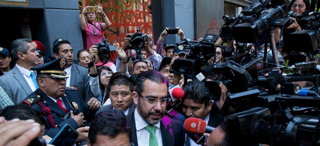 En conferencia de prensa en la que condenó los hechos ocurridos a las afueras de la Procuraduría capitalina y de la Secretarías de Seguridad Ciudadana, donde al titular de esta última las manifestantes habrían arrojado polvo con pintura a su rostro, e informó que se abrirá una carpeta de investigación al respecto.