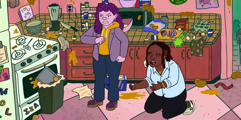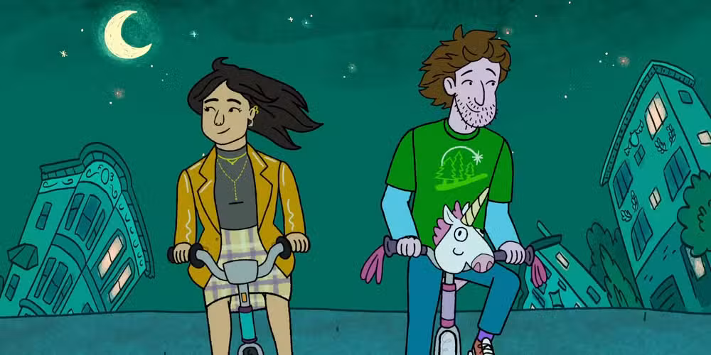 Sin duda, será necesario un tiempo para acostumbrarse al estilo de animación irregular, de colores pastel, casi parecido al de Microsoft Paint. Pero es perfecto para el ambiente desordenado y relajado del espectáculo. Esta estética bellamente minimalista no te distrae con ningún estilo visual innecesario, lo que permite que las pequeñas emociones humanas brillen.