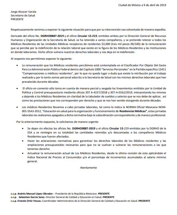 Con el objetivo de mostrar las condiciones en las que trabajan, así como para denunciar la falta de pagos, médicos residentes del Hospital General de México buscan reunirse con el presidente Andrés Manuel López Obrador en Palacio Nacional.