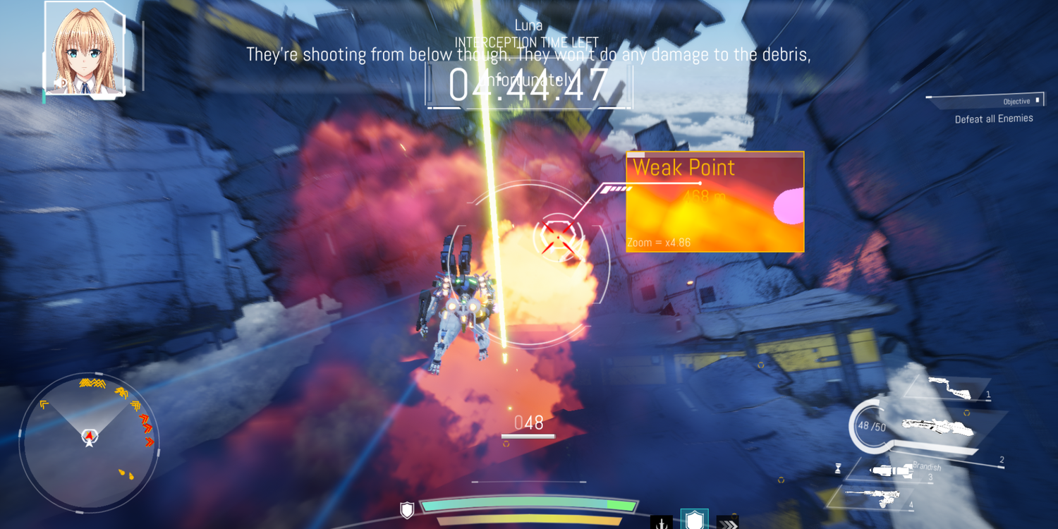 El Nimbus INFINITO El tutorial configura todo lo suficientemente bien, ya que presenta a Taiyo, un estudiante de 17 años que ve caer un Battle Frame del cielo. Al encontrar a los pilotos heridos, lo obligan a pilotarlo para llevarlos al hospital, pero termina involucrándose en una pelea de perros que resulta en la muerte de un piloto enemigo. Taiyo también descubre que estaba pilotando un modelo de alto secreto llamado “Warspite”, y dado que tiene conocimiento de su existencia y lo usó en la batalla, Taiyo ahora es parte del mayor conflicto entre las facciones humanas divididas. Si bien esto marca el comienzo de la aventura, también marca el final de la claridad de la historia.