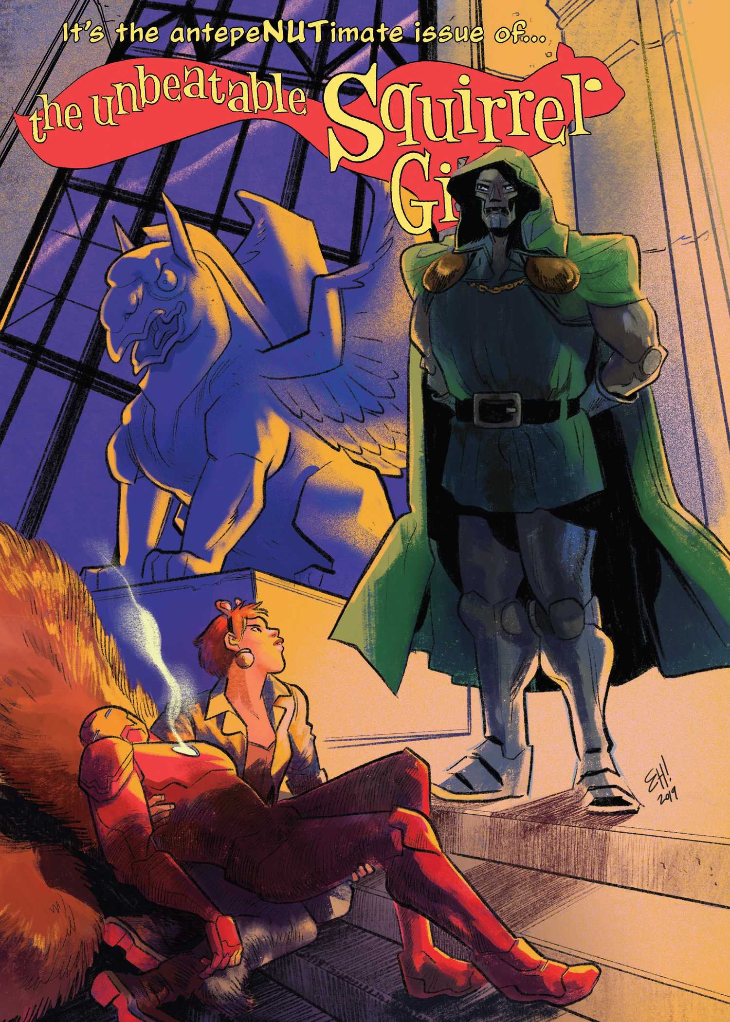 Los Avengers, los Cuatro Fantásticos, Spider-Man y otros héroes se han reunido para detener al Doctor Doom, y de alguna manera también está allí Squirrel Girl.