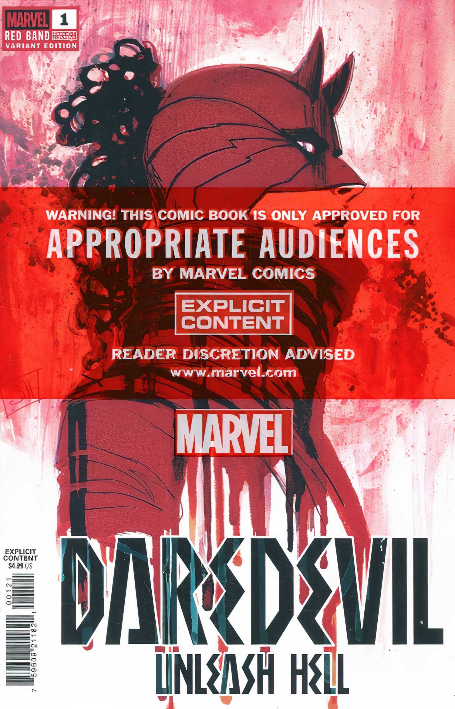 Con la libertad de atraer directamente a los adultos, los títulos de las bandas rojas a menudo presentan una mayor violencia y temas inadecuados para el público en general. El número de debut de Daredevil: desata el infierno Abrace completamente su marca de banda roja, por lo que es perfecta para Elektra y su iteración de Daredevil.