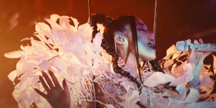 Ariana Grande vuelve a la actuación con un breve pero divertido papel en No mires hacia arriba. Ella interpreta a Riley Bina, una famosa estrella del pop cuya ruptura gana más atención que las noticias del cometa. Más tarde se une al movimiento Just Look Up, incluso escribiendo una canción de apoyo.