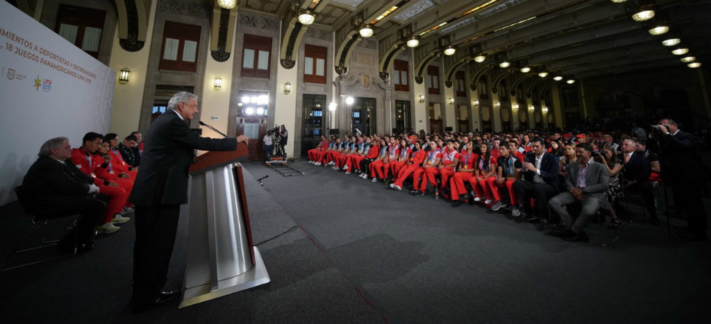 “Ha sido un extraordinario resultado, nos llena de orgullo lo que hicieron… No queremos nosotros colgarnos ninguna medalla, porque el esfuerzo es de ustedes, de sus familias, de sus entrenadores. El gobierno está en la retaguardia, no ha sabido estar adelante a la vanguardia para promover el deporte”, manifestó el presidente López Obrador a los deportistas que participaron en los Juegos Panamericanos Lima 2019.