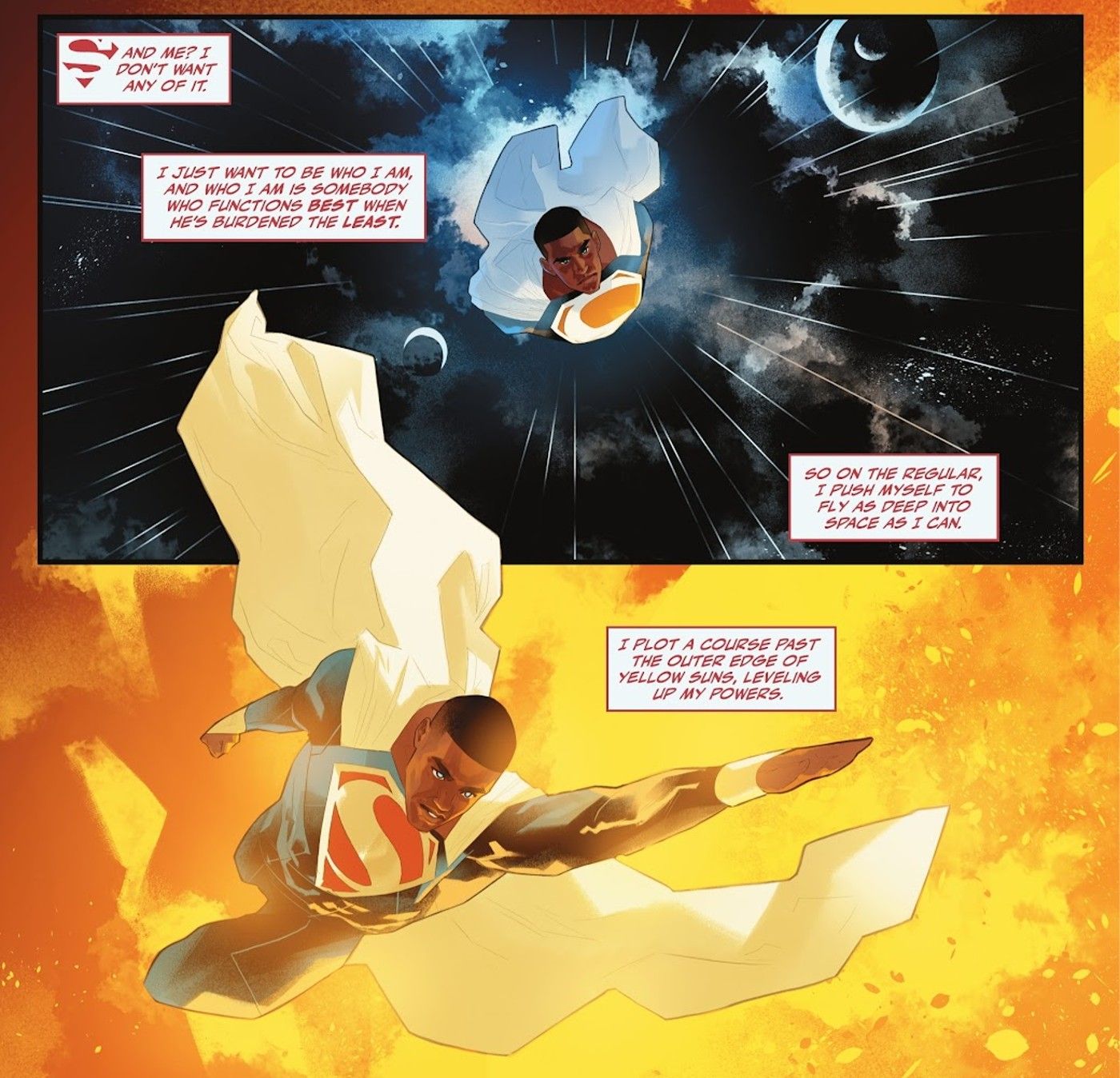 “/> En su historia de origen, Val-Zod es alguien que asumió las responsabilidades de Superman antes de que estuviera listo o las quisiera. En un momento en el que se pensaba que el Superman original se había vuelto malvado (resultó ser un clon que terminó matando a Clark), Val emergió como un pacifista protegido empujado al heroísmo como la última esperanza de supervivencia de la Tierra. “Pure Blackness” retrata a Val como, en muchos sentidos, el mismo joven que prefiere la soledad a la acción, y lucha por encontrarle sentido a su existencia.solo un símbolo“.